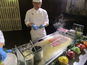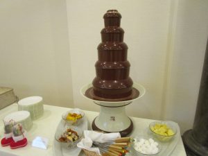 料理は色鮮やかなピンチョスや新鮮なサラダ、お庭でのお肉の鉄板焼き、そして目を引くチョコレートファウンテンまで登場!