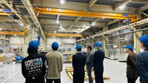 午前中は本社工場の見学を実施しました。最新の設備やロボットが稼働する現場と実際の製造ラインを見ながら、どのように製品が生まれるのかを学ぶことで、ものづくりの奥深さを感じていただけたようです。