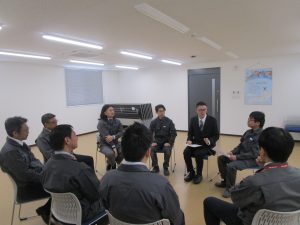 入社式の後には座談会を開催し、趣味の話や学生時代の時の部活など和やかな雰囲気の中で進行しました。